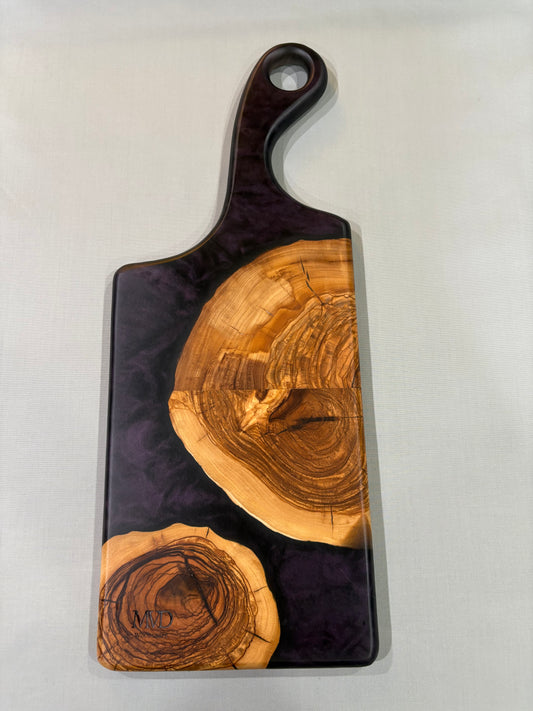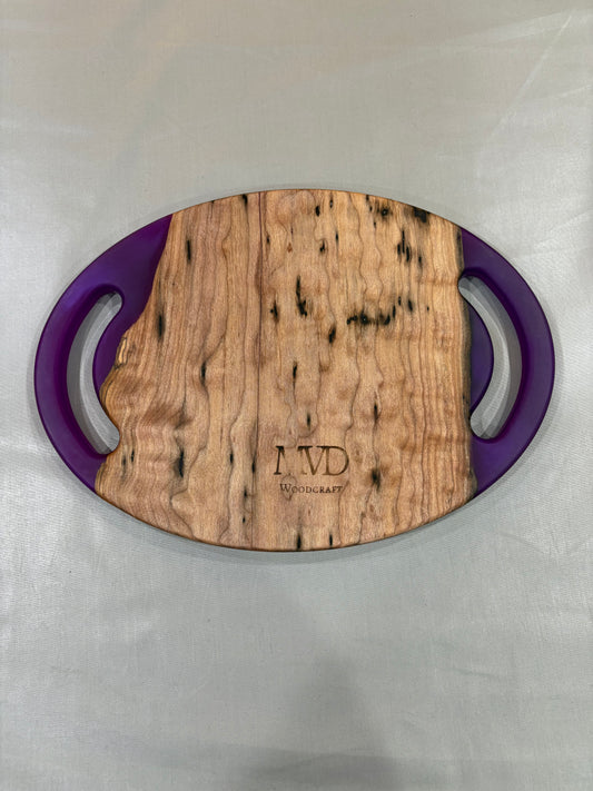 Curly Maple Charcuterie/Serving Tray with Purple Epoxy